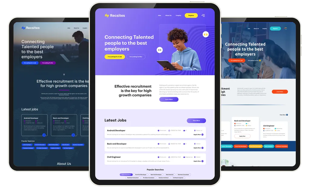Your site isn’t just “pretty” — it’s engineered to perform. Every Recsites website is built using proven high-converting layouts, optimised for both candidates and clients. It’s fully customised to your brand and includes pre-built landing pages designed to drive leads, applications, and bookings — not just list jobs.